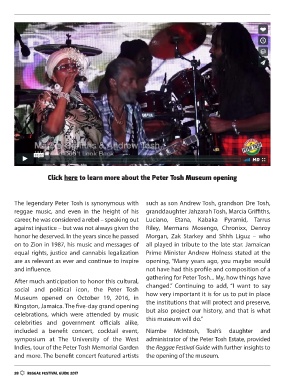 Indies, tour of the Peter Tosh Memorial Garden the Reggae Festival Guide with further insights to