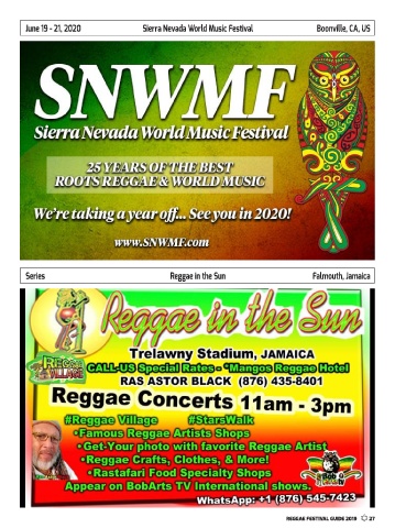 June 19 - 21, 2020 Sierra Nevada World Music Festival Boonville, CA, US Series Reggae in the Sun Falmouth, Jamaica Reggae Festival guide 2019 27