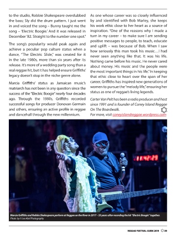 Marcia Griffiths and Robbie Shakespeare perform at Reggae on the River in 2017 – 35 years after recording the hit “Electric Boogie” together.