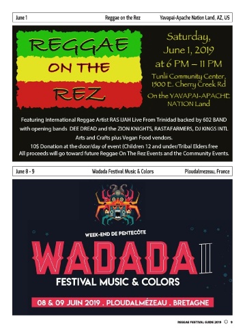 June 1 Reggae on the Rez Yavapai-Apache Nation Land, AZ, US June 8 - 9 Wadada Festival Music & Colors Ploudalmezeau, France Reggae Festival guide 2019 9