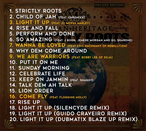 “Strictly Roots, the Deluxe Edition” comprises the remixes of Light It Up feat Jo Mersa Marley, the son of 11 time Grammy winner Stephen Marley and grandson of the great Bob Marley. “There are a few remixes of Light It Up feat Jo Mersa Marley. One from Silencyde, a young talented producer from Arizona that won the Light It Up remix contest. A second from Canadian producer Dubmatix who is a 6 time Juno award winner/nominee. The 3rd remix was done by Guido Craveiro who is one of the masterminds behind the sound of the award winning and multi-platinum selling group Seeed from Germany. It was an honor to work with these super talented producers.“