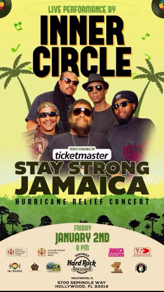 New Song by Inner Circle “Stay Strong” Listen Here ~ Stay Strong Jamaica benefit concert January 2, Hollywood, FL. ~ Get Tix Here…The STAY STRONG JAMAICA HURRICANE RELIEF CONCERT FRIDAY, JANUARY 2, 2025 – HOLLYWOOD, FLORIDA