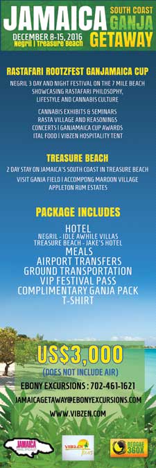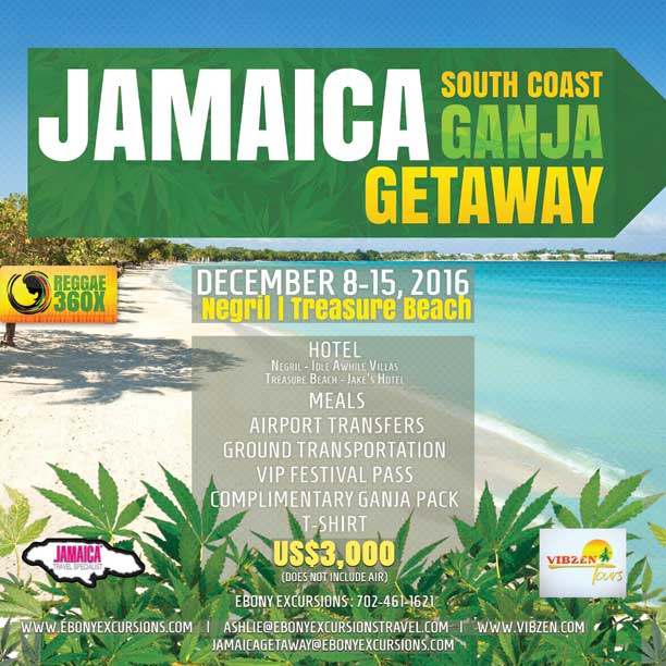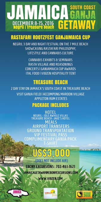 Negril, Jamaica, 16: Members from the Travel, Tour, and Music industries have collaborated to create a genuine Jamaican Rootz experience for fans the world over. The Inaugural Getaway vacation package will be launched December 8-15, 2016 with the Jamaica South Coast Ganja Getaway which is an all-inclusive guided escape for adventurous visitors to immerse themselves in Jamaica’s ganja legacy including its origins, culture and the influence of Rastafari and the sacred sacrament of Ganja as a legal indigenous right. Travel packages feature 3 day VIP Access to the 2nd Annual Rastafari Rootzfest Ganjamaica Cup in Negril on the famous 7 mile beach with rooms at the idyllic Idle Awhile Villas as well as a stay in the fishing village of Treasure Beach at Trip Advisor resort Jake’s . During this weeklong retreat, guests will have the opportunity to explore an operational Ganja farm, visit the historic Maroon Village of Accompong and other South Coast attractions as well as participate in “reasoning” sessions hosted by members of the Rastafari community. A variety of cultivated tours, meals and amenities including a complimentary ganja pack, will ensure that all who participate will get to know Jamaica “fi real”.